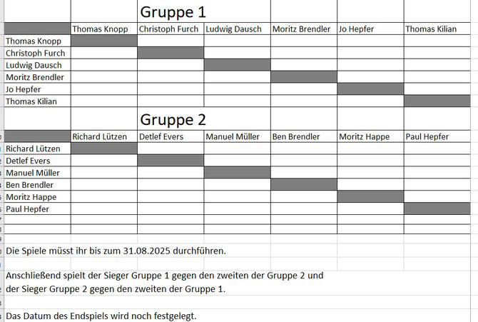 Die Paarungen werden vor Spielbeginn, ca. 13.00 Uhr, ausgelost.